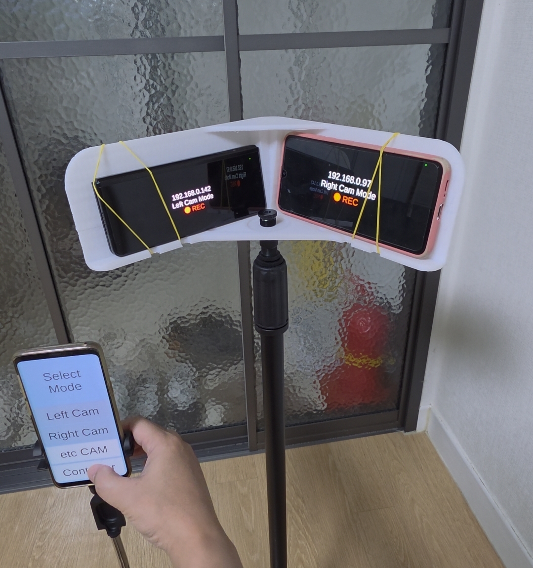 같은 WiFi에 연결된 1개 또는 여러개의 카메라를 동시에 녹화시작/중지가 가능 합니다.